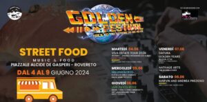 – Prosegue e termina questo fine settimana a tutto evento il Golden Festival Rovereto. In Piazzale Degasperi, ovviamente a Rovereto, musica, festa e cibo da strada sono l’anima del festival. Ingresso gratuito con i migliori Streed Food, ma anche un’area giochi per i bambini e musica live per tutti. Info nel dettaglio qui.