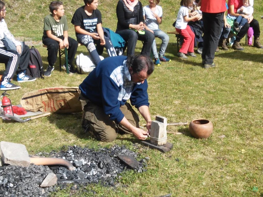 Seduti in cerchio abbiamo assistito in diretta alla fusione del bronzo, abbiamo visto e toccato moltissimi strumenti e manufatti e imparato preziosissime informazioni sul metodo di estrazione della materia prima e sulla lavorazione dei metalli.