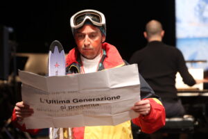 In LORIT il tema del turismo e dei suoi complessi effetti sull’ambiente e sulle dinamiche di territorio diventa dunque il paradigma per raccontare una storia più ampia, densa di relazioni e conseguenze. “L’opera – precisa Polzer – è molto di più di una semplice critica al turismo di massa e allo sfruttamento della natura: è l’illuminazione di un microcosmo a cui le persone in Trentino-Alto Adige possono riferirsi perché lo conoscono e capiscono, perché li riguarda direttamente. Non è solo una storia sullo scioglimento dei ghiacciai sulle Alpi: è una storia sull’aggrapparsi a un passato glorificato che non può essere più ripristinato”. Nei tempi complessi che stiamo vivendo, dove tutto sembra sgretolarsi e dove anche le certezze faticosamente conquistate sembrano in pericolo, LORIT pone degli interrogativi destinati ad accompagnare il pubblico anche una volta abbandonato il teatro: di chi è il problema della crisi climatica? Chi siamo quando tutto intorno a noi si disintegra? Cosa rimarrà di noi? Come possiamo andare avanti? Nessuno può fuggire, siamo tutti sulla stessa barca, anzi sulla stessa cabinovia.