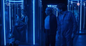 Arturo si trova risucchiato in questo mondo virtuale di app e videocall, anche la multinazionale ha una sede totalmente vuota e si comunica solo tramite videocall, altra triste normalità introdotta dal Covid. Lezioni da remoto, meeting via call, addirittura dischi registrati via call, il 2020 ha dato una spallata alla vita vera per abituare alle interazioni da remoto. Insomma la multinazionale stuzzica Pif all’acquisto di una app di incontri. Pure qui gestita da un algoritmo l’app permette l’apparizione dell’ologramma di quella che dovrebbe essere l’anima gemella dell’utente.