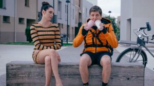Nella pellicola Pf, pur con la sua ironia sorniona, ce lo fa respirare. La corsa contro il tempo a causa del monitoraggio della app a cronometro. Quindi non solo la consegna va effettuata in modo impeccabile, ma anche entro un tempo strettissimo. Chi sfora i tempi, chi non consegna con il sorriso e la canzoncina imposti, chi riceve una recesione negativa, paga pegno. E paga davvero. Tanto che, invece di guadagnare, il malcapitato finisce in perdita. Tanto più che mezzo, la bicicletta, e materiale lo zaino ecc, è a costo del lavoratore.