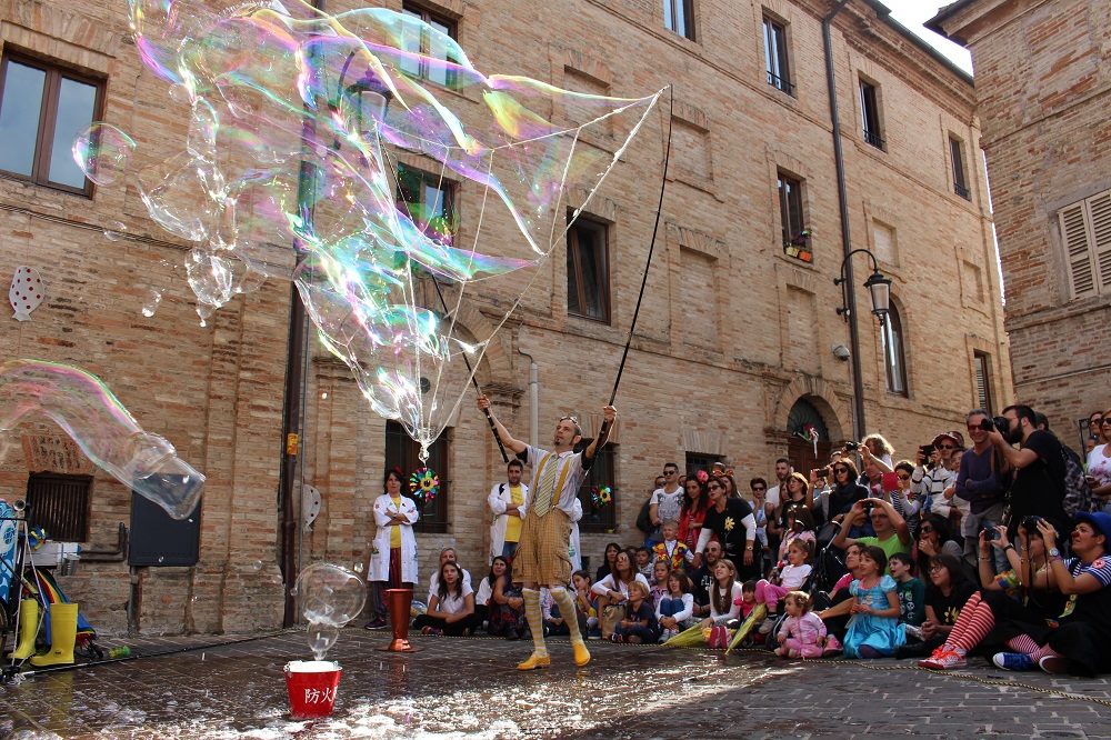 Alle 16.30 “Ancora un gioco!” di ASD Spazio Circo Bergamo: uno show dedicato ai più piccoli che punta sul ridere e far ridere, e sullo sperimentare, nell’Atelier Aperto di Scuola Circo, guidato dagli artisti.