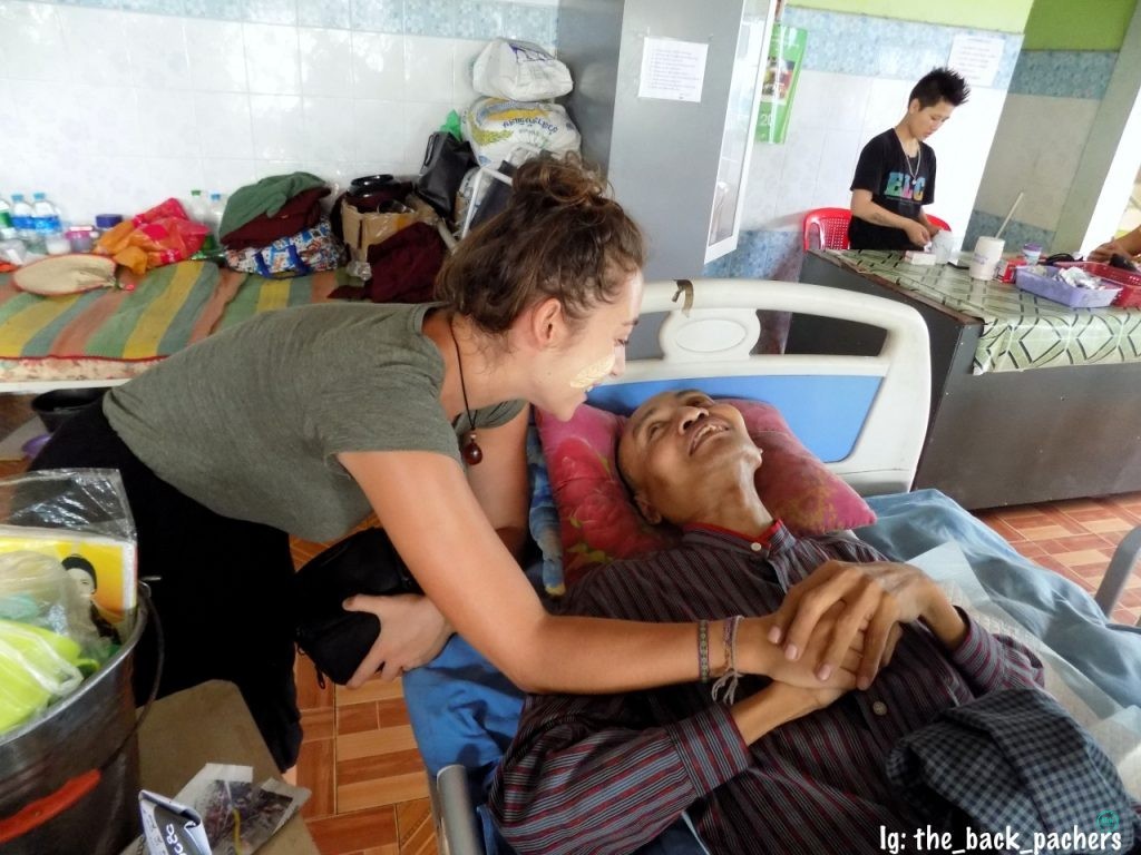 La giornata comincia attorno alle sei, quando la maggior parte dei volontari si sveglia e abbandona il proprio giaciglio per recarsi alla colazione. Una volta aver riempito lo stomaco si può scegliere una, o più, delle attività proposte: si può infatti decidere di seguire i monaci a piedi scalzi lungo le vie della città, aiutandoli a raccogliere le offerte che la popolazione dona quotidianamente; oppure, restando a Thabarwa, le opzioni variano dalla cura dei pazienti, alla fisioterapia, a “make them move”, una simpatica attività dove i volontari, armati di uno stereo e di tanta allegria, girano fra i vari reparti a far ballare e sorridere i degenti con un pò di musica. Non importa quale attività sceglierete, in ogni caso arriverete all’ora di pranzo con un sorriso enorme sulle labbra e tanta commozione, dovuta a vedere la devozione degli abitanti della capitale nei confronti dei monaci durante l’alms, che escono dalle loro case e donano tutto ciò che possono, o dovuta agli sguardi riconoscenti e alle parole affettuose dei pazienti incontrati durante l’attività scelta. Nel pomeriggio, dopo un breve momento di relax, le attività ricominciano, e si può scegliere fra il lavaggio dei pazienti o il “Pagoda party”, che consiste nel portare le persone invalide in carrozzina fino alla vicina pagoda, dove possono così pregare e meditare; si può inoltre decidere di seguire dei corsi di birmano, insegnare inglese ai monaci o recarsi in cucina per preparare la cena a tutti i volontari. La sera, dopo cena, ci si ritrova tutti per fare un resoconto della giornata e decidere a chi assegnare le attività del giorno seguente. Ah, dimenticavo, all’alba e prima di andare a dormire è possibile seguire lezioni di meditazione insegnate da una monaca buddhista del centro.